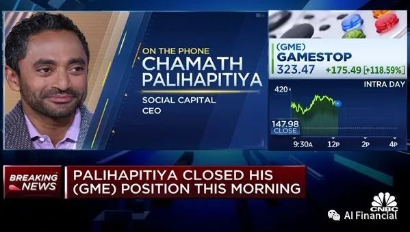 時間來到2021年1月26日,多頭又迎來一個重磅投機人物的加入,查馬斯(ChamathPalihapitiya),矽谷知名風投家以及前臉書高管。他的投資理念與木頭姐非常相似,喜歡投那些在未來可能會成功的初創企業,不但如此,他還熱衷於炒作散戶追捧的熱門股票(MEMESTOCKS),因此在1月26日,他在twitter上果斷的宣佈站隊散戶,花費12.5萬美元買入GME看漲期權,向做空機構宣戰。