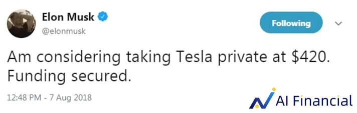 時間來到了2018年8月,飽受做空困擾的馬斯克終於忍不住了,發了封郵件給所有的員工特斯拉準備私有化,並公開在 twitter聲稱,考慮將特斯拉私有化,資金已到位。雖然就在這條推特發佈之前,英國金融時報剛爆出消息,說沙特主權財富基金持有20億特斯拉股票,已成為特斯拉第八大股東,意味著馬斯克已經找到了金主,對於私有化是很有利的,但是華爾街的空頭們還是堅信公司基本面不行,並不買帳私有化。